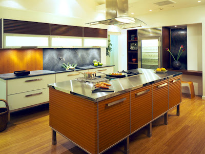 This kitchen design is a fine example of my FusionDesign philosophy in practice. It subtly blends contemporary European elements with soothing Asian accents like the glass shoji screen doors and Zen water feature, while offering increased functionality for the American lifestyle.